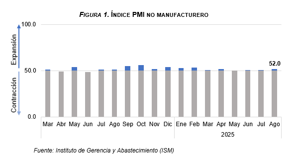 Adicionalmente, el índice de gestores de compras (PMI por sus siglas en inglés) no manufacturero del Instituto de Gerencia y Abastecimiento (ISM por sus siglas en inglés) registró un valor de 52.0 en el mes de agosto, por encima del 50.1 observado en julio, indicando la expansión del sector servicios, donde se emplea gran parte de la diáspora dominicana.