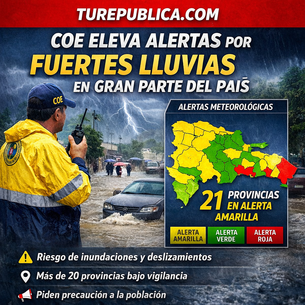 El Centro de Operaciones de Emergencias (COE) informó este viernes el aumento de los niveles de alerta en múltiples provincias del país, debido a la incidencia de una vaguada que está generando fuertes aguaceros, tormentas eléctricas y ráfagas de viento en distintas regiones.